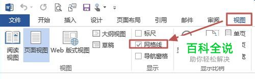 打开Word文档,切换到“视图”选项卡,在“显示”组中将“网格线”复选框选中。