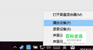 我们以win10操作系统为例,其实各个系统都大同小异。首先右键点击右下角的小喇叭,点击“播放设备”