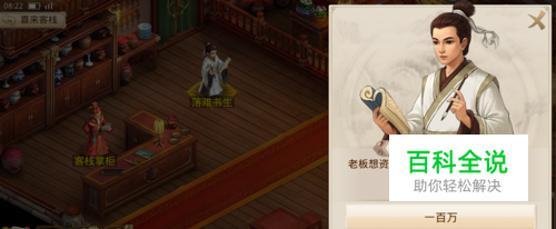 进入客栈之后,我们会看到在客栈掌柜旁边会有一个落难书生,我们点击这个落难书生。