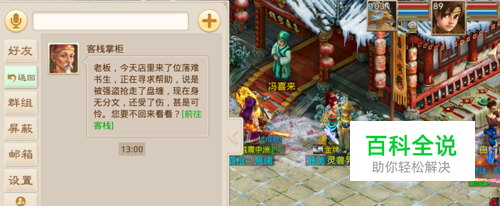 我们回到天墉城,然后去找冯喜来,我们点击冯喜来,点击我想进入自己的客栈。