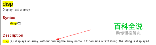 在matlab中,输出信息采用disp函数,根据软件的帮助信息可以知道如下语法: disp(X) 其中,disp会显示X数组,如果X是字符串,则会将该字符打印在屏幕上,常用于显示输出。 需要注意的是,在matlab程序设计时较多的是数据处理,而显示时需要将数值转变为字符串形式,可以利用num2str函数。