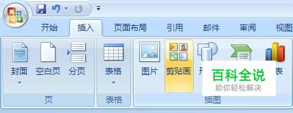 找到【插入】选项卡下【插图】,单击【剪贴画】,如图: