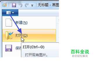 点击画图软件界面左上角书形状的主菜单按钮,再点击菜单中的“打开”