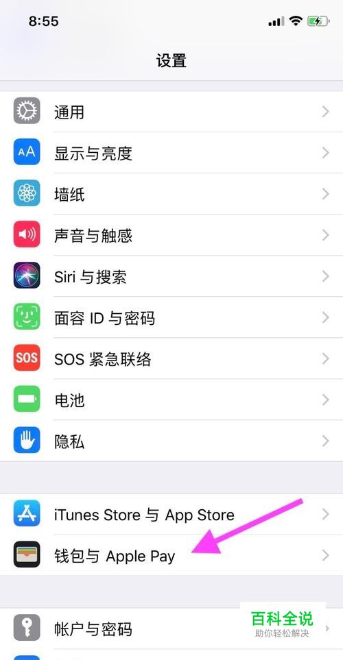 在【设置】界面里,找到钱包和Apple Pay,如下所示点击进入