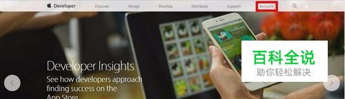 打开地址https://developer.apple.com,点击右上角的Account。