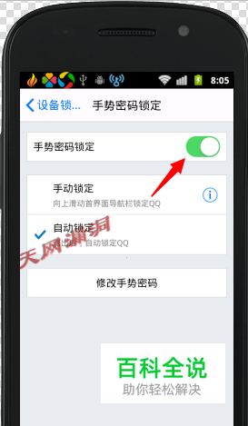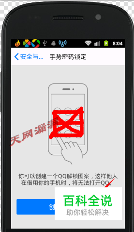 根据提示设置手势密码,点创建,设定后,手机密码锁定开启。顺便把安装登陆检查也开启,怎么也会多一道安全保障。