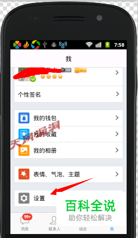 打开手机QQ,在下方栏里找到【我】然后找到【设置】项,如果看不到,就向上拖动屏幕。