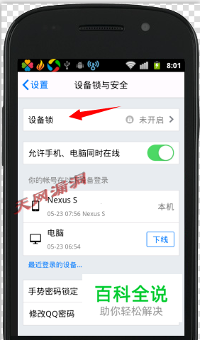 回到设置才发现应该是升级设备锁,点击开启设备锁,填写发给手机的验证码,不过不知是怎么回事,自动就添加上了。