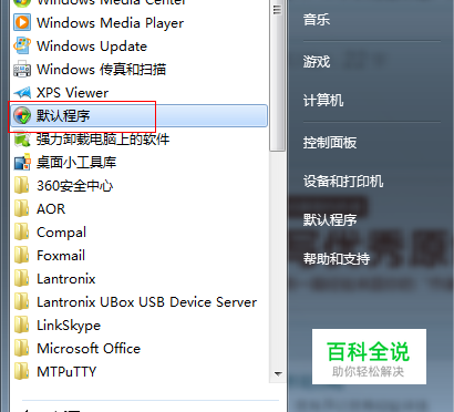 打开开始菜单,选择默认程序。