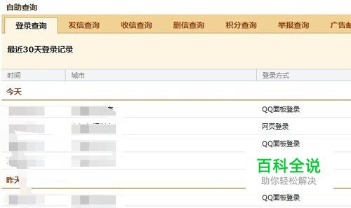 之后,进入到“自助查询”页面,通过切换到登陆查询标签下,可以查看“最近30天登录记录”的详细信息。