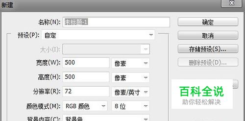 打开PS,在文件中新建一个500乘500PX的背景图。
