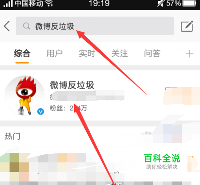 首先我们打开微博搜索微博反垃圾并打开它