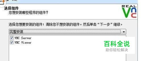 首先电脑上需要安装VNC服务端。双击下载下来的安装程序出现安装界面,安装路径默认就可以。安装组件那里选择完整安装。