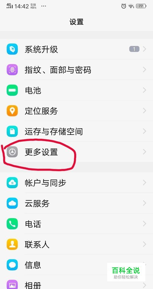 在设置功能主页中,我们找到“更多设置”选项,点击进入,如下图所示。