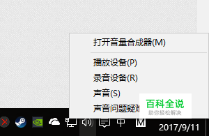 桌面右下方右键小喇叭点击录音设备