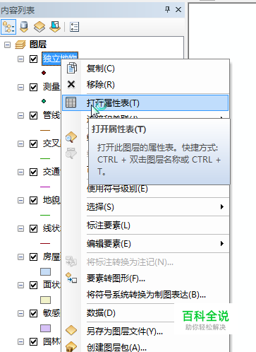 打开ArcMap,添加shape数据到图层管理其中,然后右键图层打开属性表。