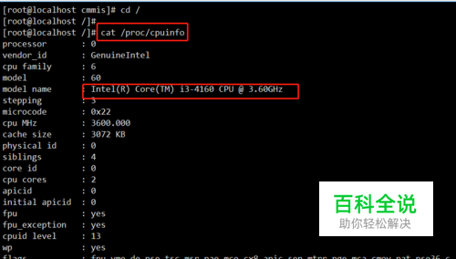 cat /proc/cpuinfo查看linux系统的CPU型号、类型以及大小,如下图所示。