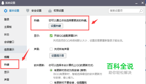 CTRL+ALT+A是QQ专有的快捷键,若不能使用,我们得从QQ本身上找原因。首先检查电脑是否有登入QQ,若无,则无法使用快捷键,若有,先找到QQ设置。