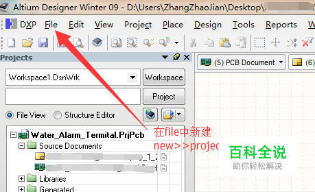 1,打开Altium Designer软件,新建一个工程:PCB project。在新建的PCB project上点击右键,添加新文件(原理图?PCB图?),保存时分别保存“原理图”“PCB图”和“工程文件”