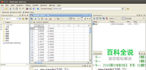 在matlab命令行输入: plot(1:100,aa(:,1)); 这是最常用的plot命令,可以得到如下图像。