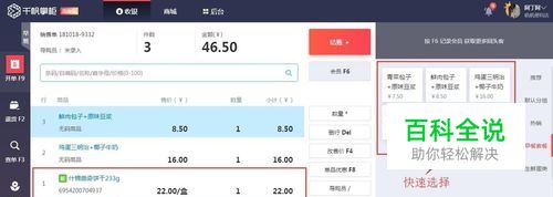 扫描商品:用扫描枪扫描消费者的商品,系统根据条形码自动识别出商品信息。如果是非条码商品(例如称重商品或鲜食类),可以在右侧收藏夹进行快速选择。