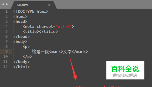 接下来我们选取一些文字,将其包裹在mark标签内,如下图所示