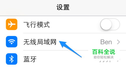在设置列表中点击 “无线局域网”一栏,如图所示