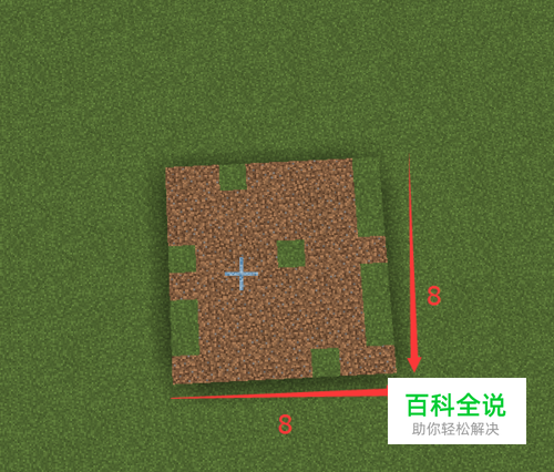 首先我们先用泥土做一个长八个方块宽八个方块的正方形区域。