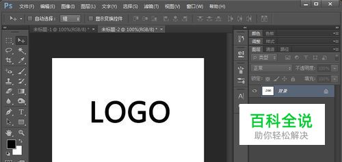 切换到移动工具,将白色logo拖拽到背景图片上。