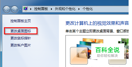 在“个性化”界面中,选择左侧的“更改桌面图标”项; 推荐:win7系统下载win7zhijia.cn