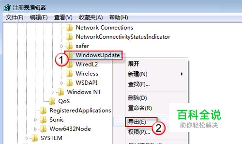 找到以下键值 HKEY_LOCAL_MACHINE\SOFTWARE\Policies\Microsoft\Windows\WindowsUpdate 小易提示: 由于注册表修改不当可能会引起严重问题,因此最好在修改之前做好备份。这样,如果问题没有得到解决,我们还可以将注册表进行还原。 现在,我们首先备份注册表键值 WindowsUpdate。右击 WindowsUpdate,选择“ 导出”。