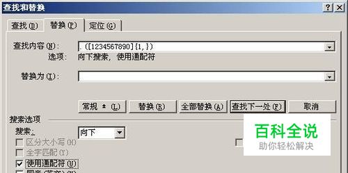 最舍得的方法 笔者还负责为单位职工发放工资,每当员工支取工资时,笔者一般都会将工资条中不足1元部分舍去,大多数情况下并不进行四舍五入,以免账面出现亏损,所以笔者便发现了此“最舍得的方法”。 ①在Word中同时按下“Ctrl+F”快捷键打开“查找和替换”对话框,点击“替换”标签。 ②在“查找内容”后的输入框中输入“.([1234567890]{1,})”(不含双引号),将“替换为”后的输入框留空(图2)。 ③点击“更多”按钮打开高级选项,确保勾选“使用通配符”选项,最后点击“全部替换”按钮即可将所有工资条中不足1元的零钱部分舍去。 小提示:其中“()”用于分组,“[1234567890]”表示出现方括号中的任一字符,“{1,}”表示只要出现1个前一字符即符合条件。