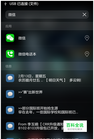 (1)是否被放置到了文件夹或者某个位置未找到,可以通过桌面的搜索功能查询,方法如下: 在桌面中间位置手指下滑,可以进入搜索功能界面,在搜索框中输入要查找的应用(如微信)就可以搜索到对应的应用,点击右侧的定位按钮,可以跳转到应用在桌面的位置。如图所示: