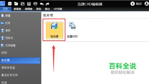 运行CAD编辑器,打开软件,然后点击“文件”,再点击“批处理”,进入批处理界面。