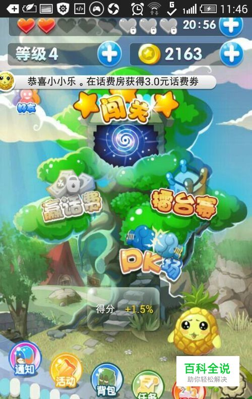 全民爱消除赢话费重点:要想在爱消除里获取更多的话费券,除了闯关模式里必须得到三颗星星外,还可以将闯关模式打过4-25关,就可以开启赢话费模式。要打过4-25关,就必须要加强爱消除的技能,那么如何加强爱消除的技能呢?下面就说说我玩爱消除的些许经验吧,有不到之处请大神们多多包含。1在玩全民爱消除时尽量先消除下方的水果,这样容易产生更多意外的水果消除;2.努力赚取更多的金币,来升级爱消除里的个人等级和宠物等级,因为个人等级越高过关得分越高,生命恢复时间越短。宠物等级越高,过关得分越高。所以不要闷着头一直去消除,也要看着任务去玩,任务里有海量金币,毕竟咱是需要赚取话费的。最后希望大家多多赚话费。