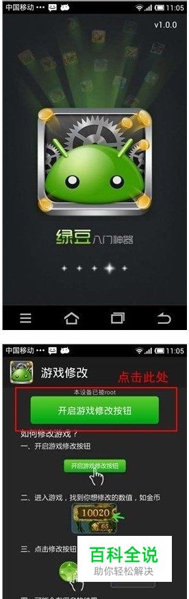 步骤一:上绿豆八门神器官网bamen.ishuaji.cn下载安装好最新版绿豆八门神器,启动绿豆八门神器,点击上端的“开启游戏修改按钮”。在此页面下,有比较简略的绿豆八门神器使用方法,大家也可以看看。另外需要注意的是,绿豆八门神器的使用需要手机有过root,如果你还没有root,那就赶快先下载绿豆root神器给手机root一下吧。 【绿豆八门神器,第一步点击开启游戏修改按钮】
