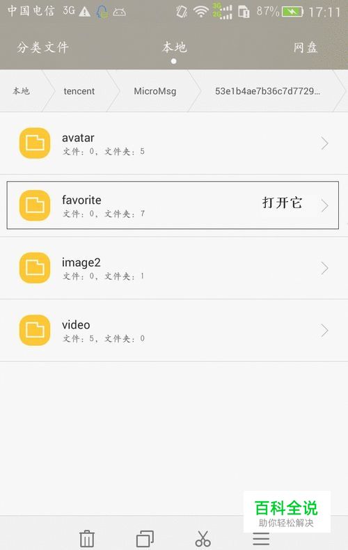 找到favorite文件夹(这就是“收藏”的所有缓存文件了),打开会有很多数字命名的文件夹(每个文件夹代表你所收藏的一个内容)