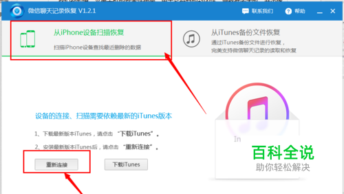 安装打开 互盾苹果恢复大师 ,然后点击从IOS设备里恢复。如果没有iTunes的话必须安装,未识别到手机的点击重新连接或者换个USB借口试下