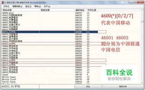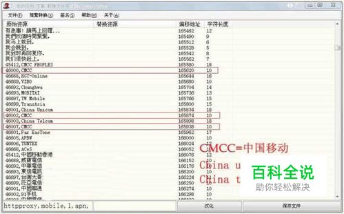 打开AndroidRes编辑器汉化版,然后把文件resources.arsc直接拖到界面中,往下拖就会出现下面的界面,其中英文和中文内容是相互对应的,CMCC为中国移动,China Unicom则是中国联通,China telcom则是中国电信,其他的可以暂时忽略,但方法相同。