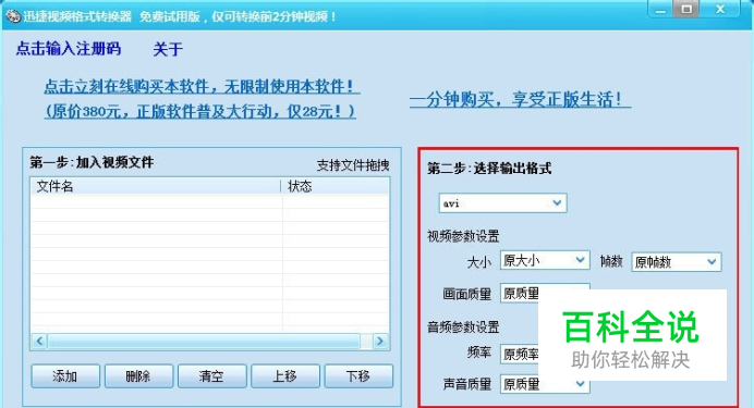 第二步选择输出格式。将之前选择的mp4视频转换为相应的格式,并可以设置所要转换的参数。