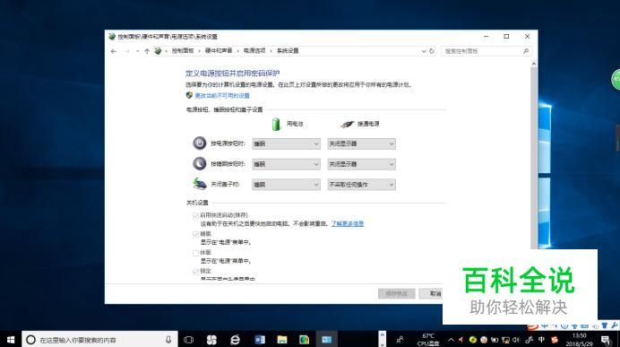 唤出"电源选项"用户界面,如图所示。点击"选择电源按钮的功能"图标,定义电源按钮并启用密码保护。