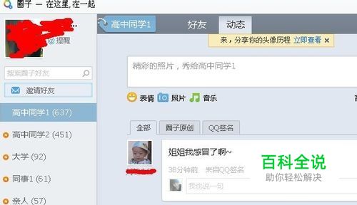 2、进入QQ圈子,可以看到QQ为你自动分的组了,看你需要找什么时候的同学了,其实这个原理就是好友分享一样,就是你没有加的同学,可能你加了的同学的QQ加了这个同学,那么你就可以很容易找到这个你想找的同学QQ号码了。