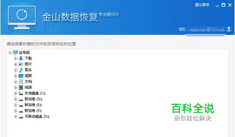 2.选择扫描对象:在界面中选择文件丢失前所在的磁盘或文件夹,然后点击“开始扫描”。