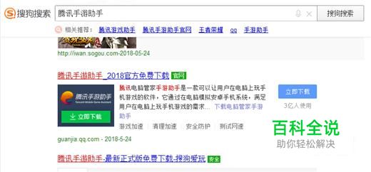 首先,我们使用搜狗搜索“腾讯手游助手”,然后选择第一个搜索结果点击进入腾讯手游助手官网首页。