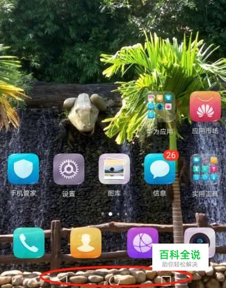 解锁手机,进入手机界面。可以看到手机界面底部有一个三角形,一个圆形,一个正方形。