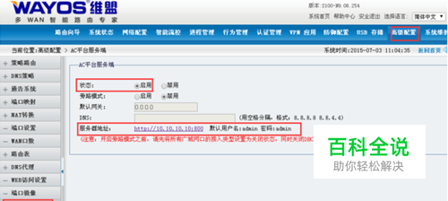 需要在路由网关开启“AC平台服务器”,记住服务地址,端口号及用户名和密码,也可以直接点击服务器地址: