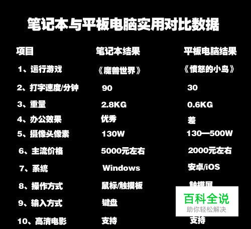 笔记本与平板电脑实用对比数据