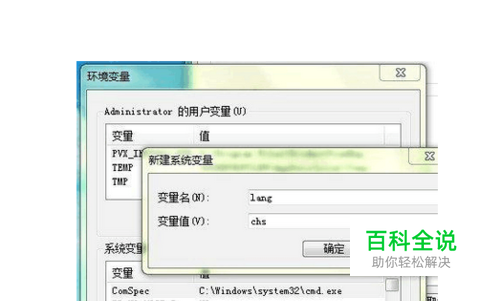1.修改环境变量。 首先请右击“我的电脑”,然后依次点“属性”,“高级”,“环境变量”,在用户变量中新建一个变量,变量名:lang,变量值 chs ,(chs就是简体中文的意思,以保证你的安装界面是简体中文),(如果不进行这一步操作的话安装界面里可能会显示乱码,我这里是这样的,如果你的安装界面里没有乱码,可以跳过这一步)