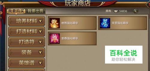 根据自己的需要选择左上角的购买和出售,如若是购买物品,可通过左栏选择类别,以便更快的找到所需的物品;如果是想出售自己的物品,则点击左上角出售,参看步骤4和5
