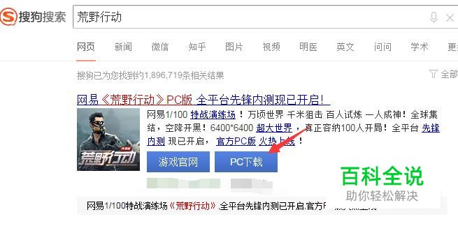 首先浏览器搜索下载安装荒野行动APP,如图: